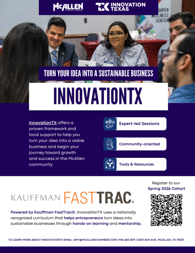 InnovationTX powered by the Kauffman FastTrac curriculum, guides entrepreneurs through a structured journey from idea to launch, covering business planning, market research, branding, financials, and leadership. Participants build a full Business & Marketing Plan and pitch their concept at the end of each phase.
